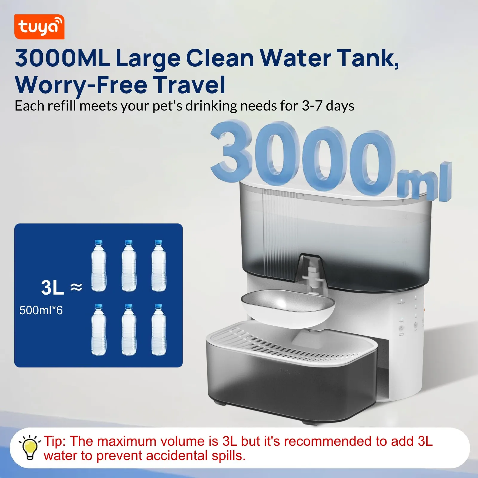 3L Pet Water Fountain,No Filter,Rechargeable Automatic Water Dispenser for Cat&Small Dog,Wastewater Separation Always Fresh Water