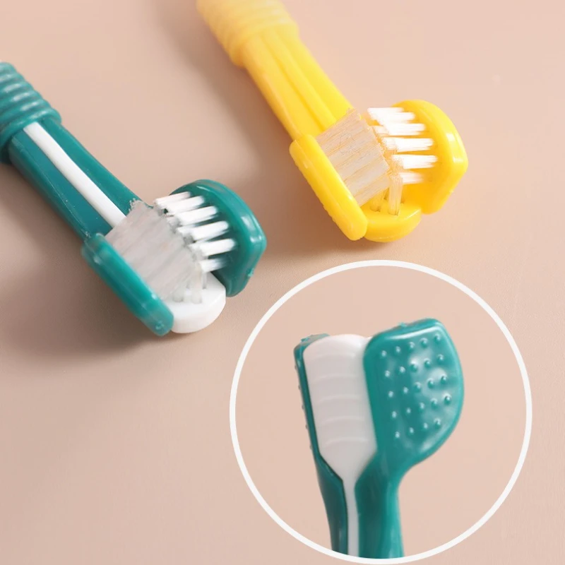 Pet Cleaning Toothbrush Cat Dog Beauty 3-Headed Toothbrush Clean Remover Teeth Stones Scraper Pet Cleaning Supplies